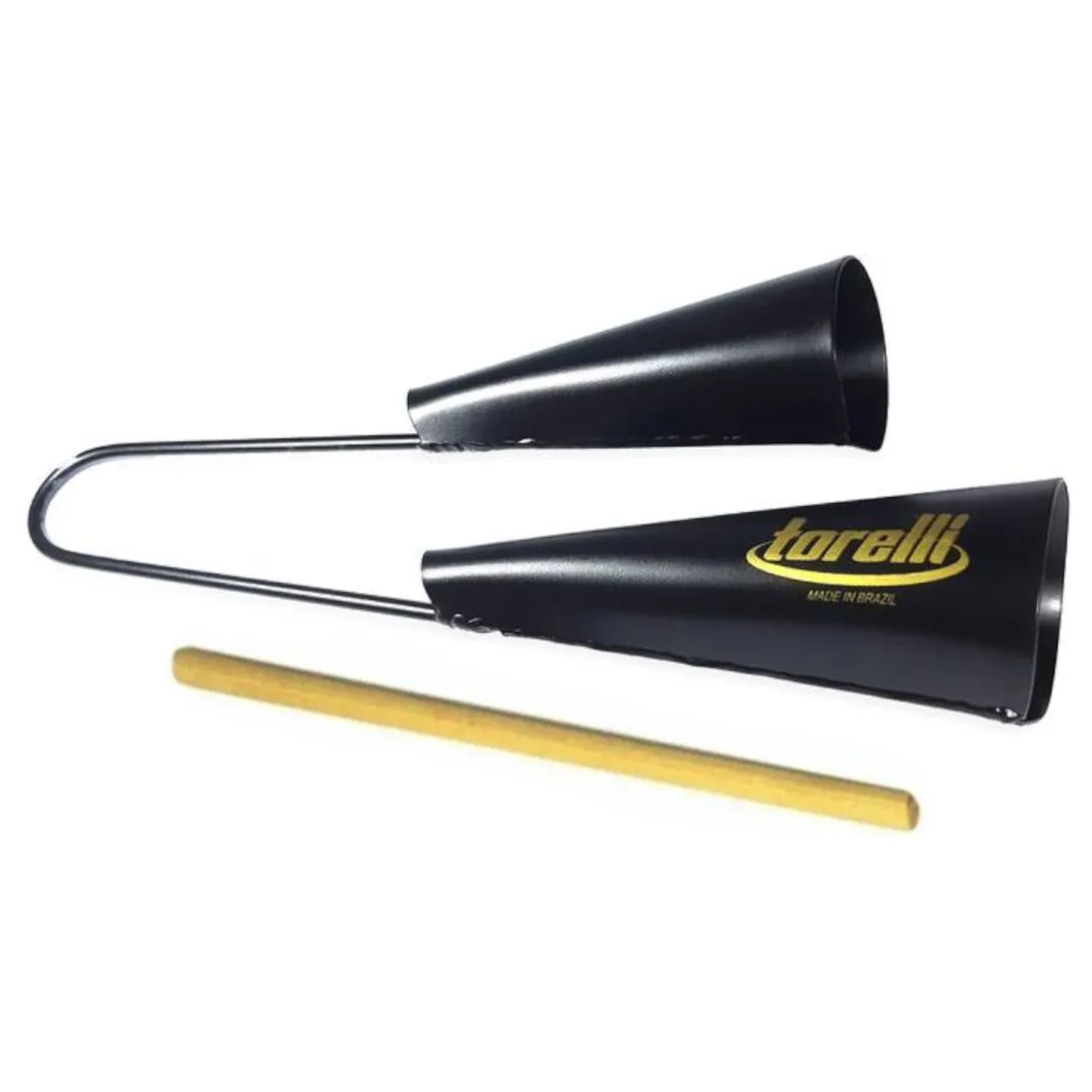 Agogô Duplo Médio Torelli TO018 com baqueta, fabricado com matéria prima de excelente qualidade proporcionando durabilidade e desempenho de sonoridade superior.
