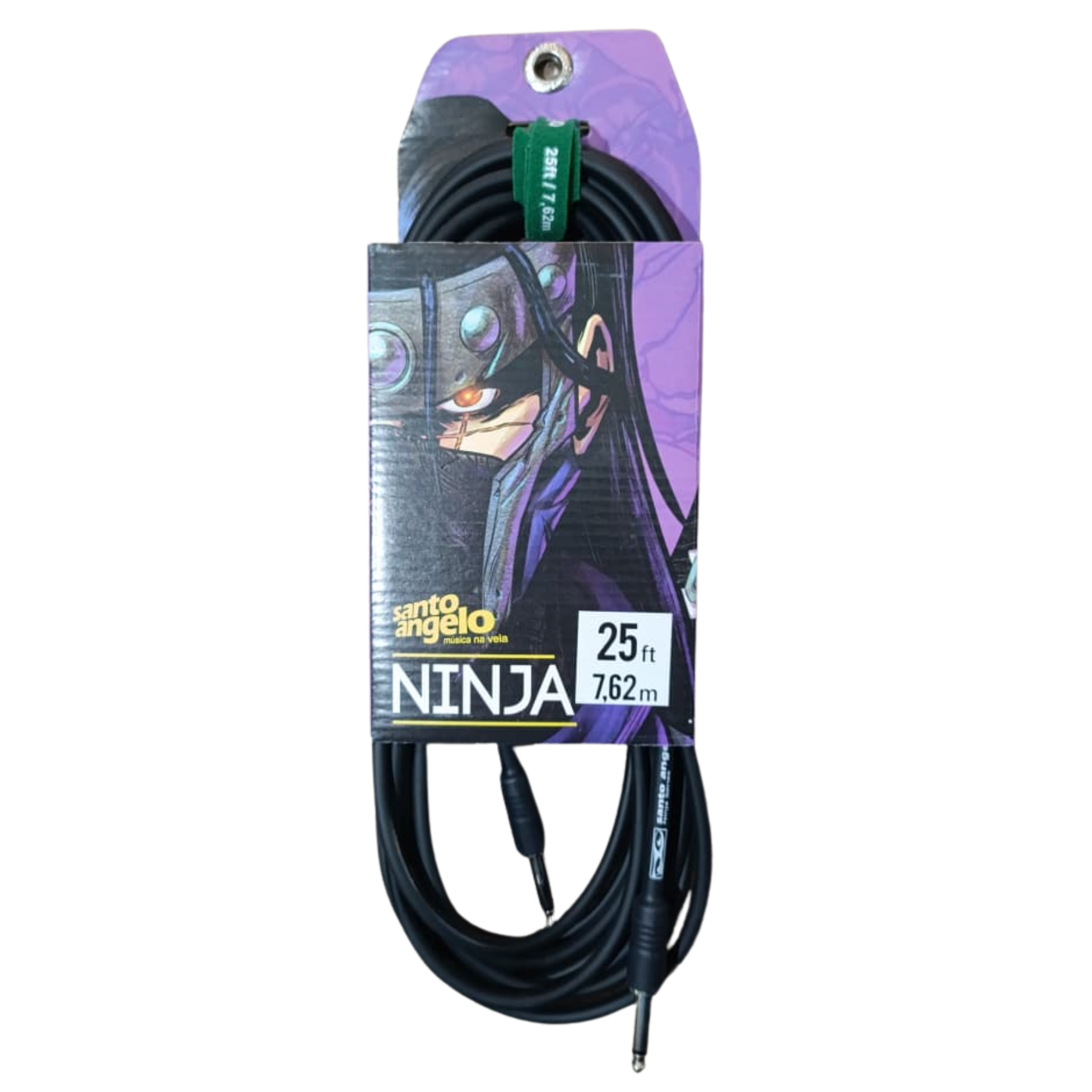 O Cabo Santo Angelo Ninja para guitarra é um acessório confiável, com boa qualidade na transmissão dos sinais. Possui 7,62m de comprimento e conectores P10 resistentes que plugam com segurança em sua guitarra. Vem com cobertura em PVC Flexível, que evita quebras, isolamento em polietileno e blindagem em cobre trançado bastante resistente.