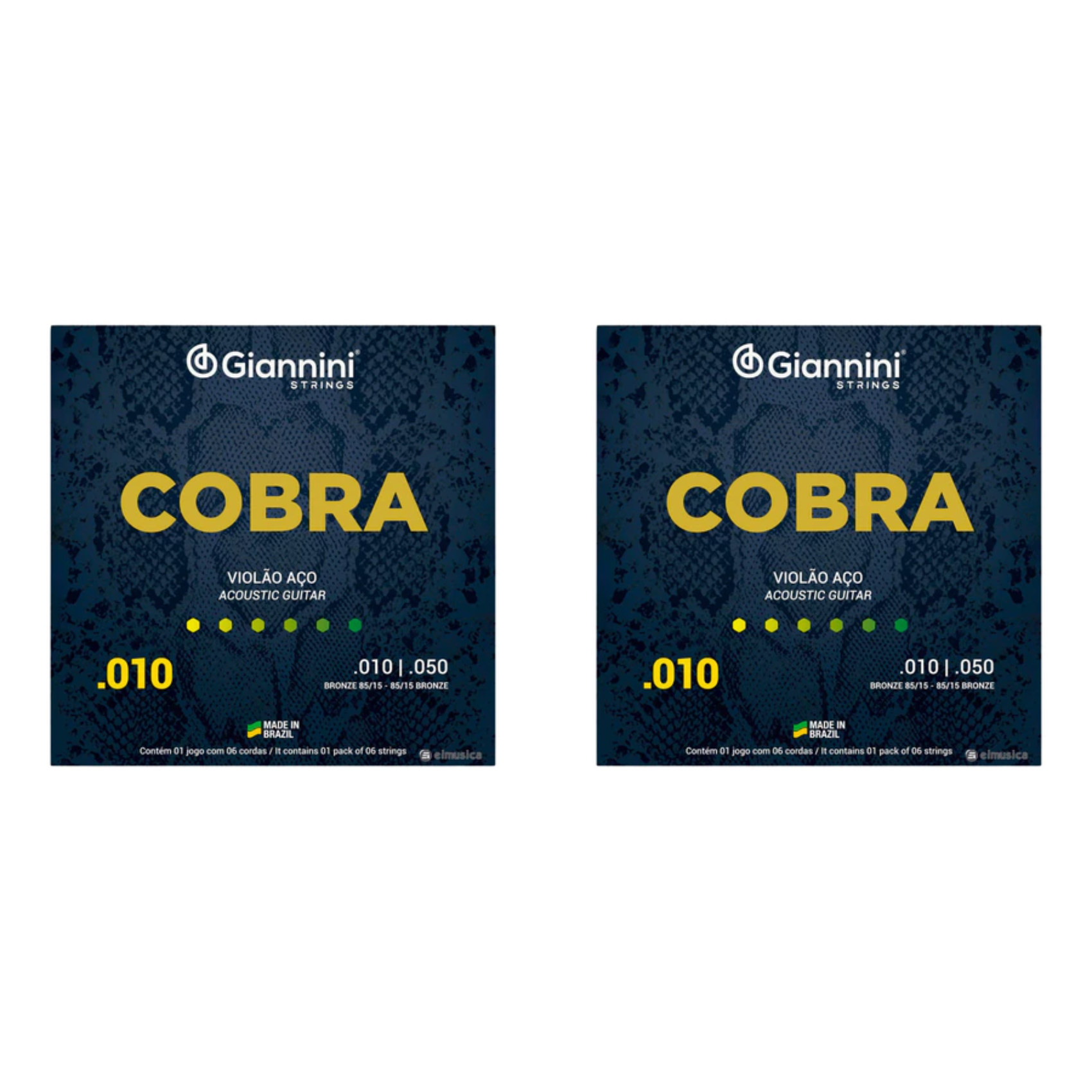 Kit Com 2 Encordoamentos Giannini Cobra Violão Aço 010 GEEFLE