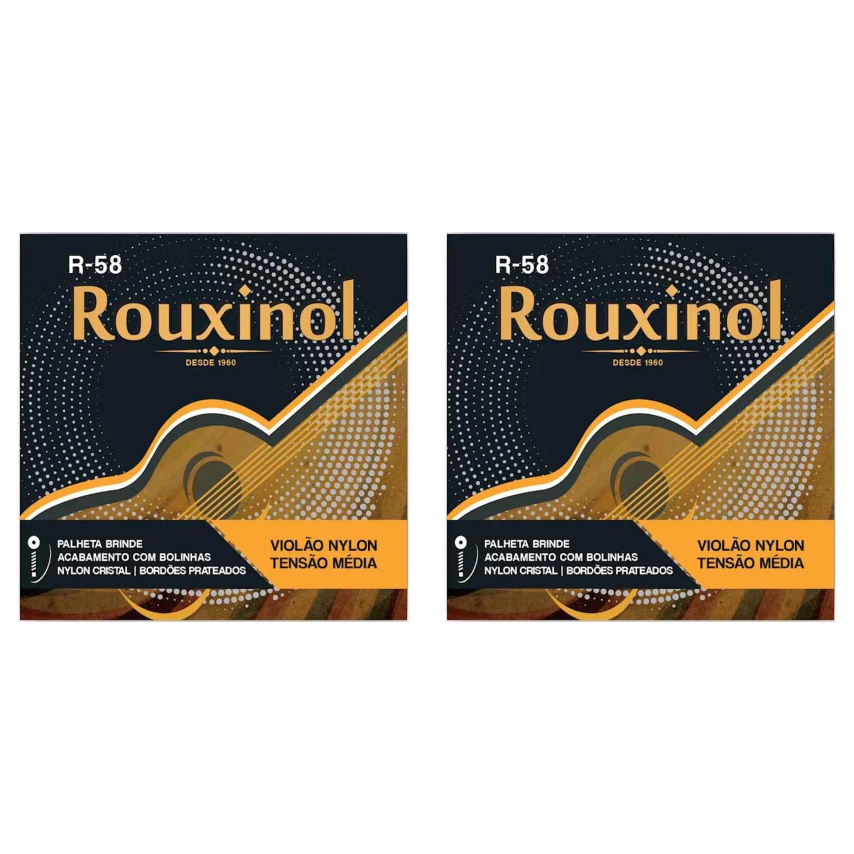 Kit 2 Encordoamentos Para Violão De Nylon Com Bolinha Rouxinol R58 Tensão Média
