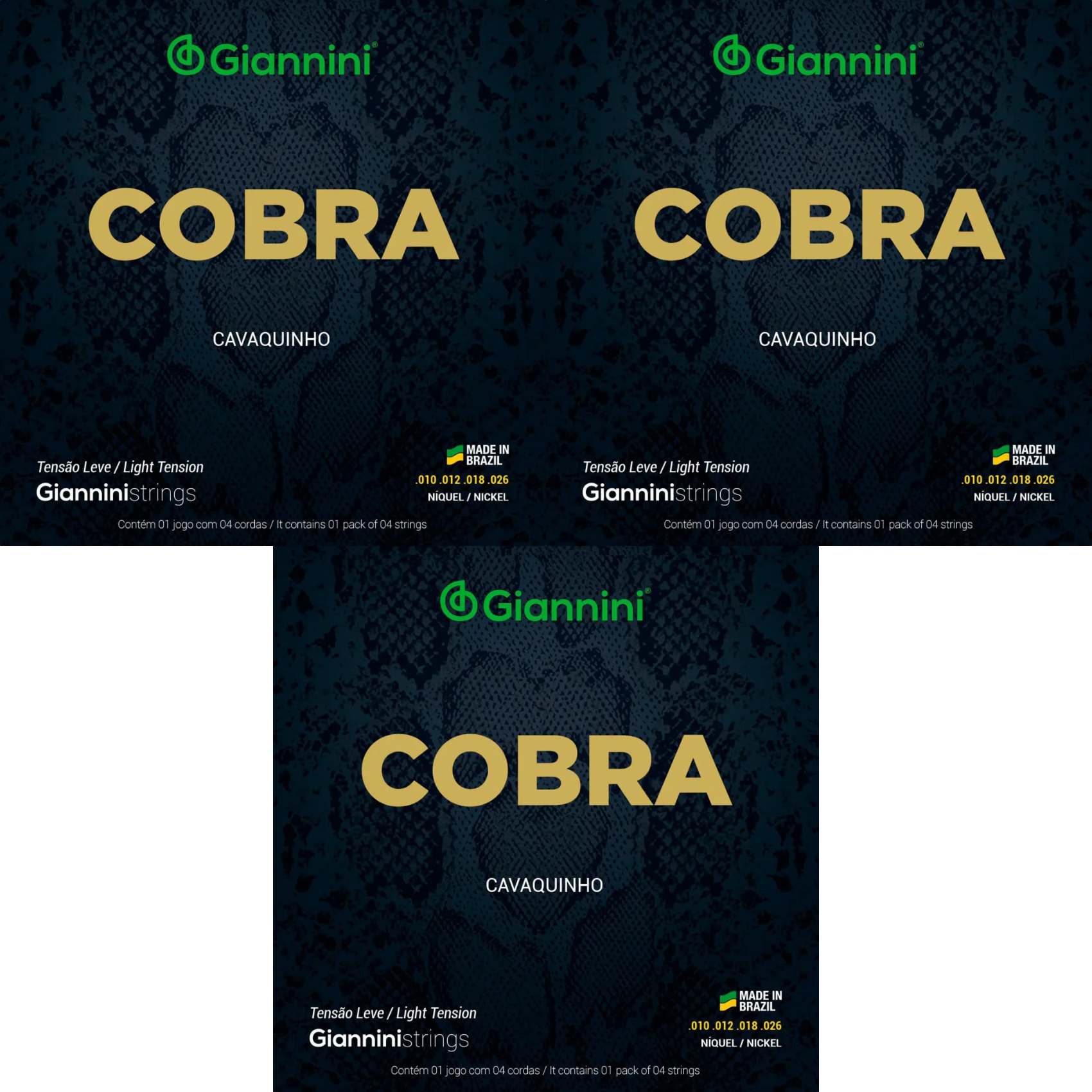 Kit Com 3 Encordoamentos Cavaquinho Giannini Cobra Tensão Leve GESCL
