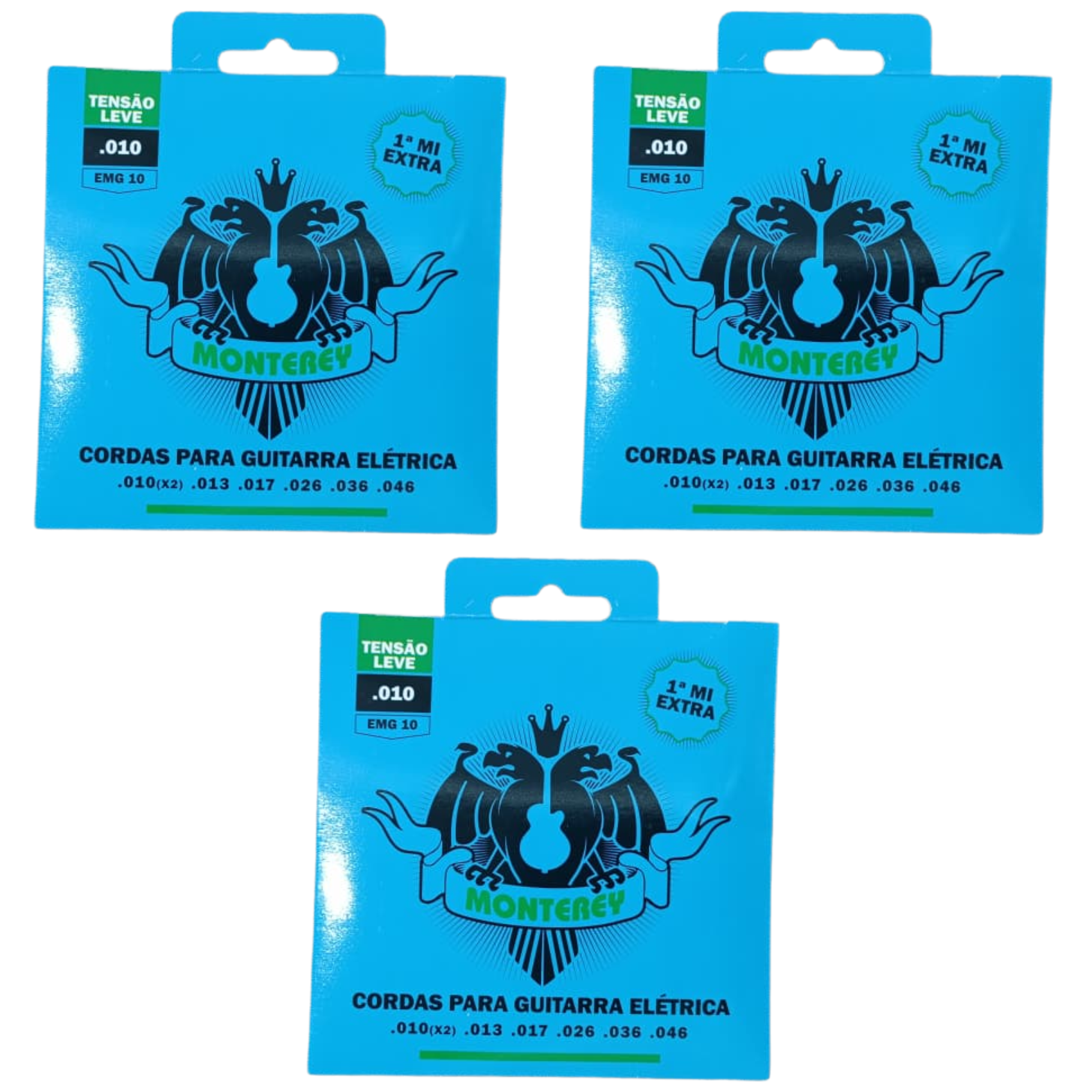 Kit 3 Encordoamentos Monterey Solez Guitarra 010 Mi Extra EMG10