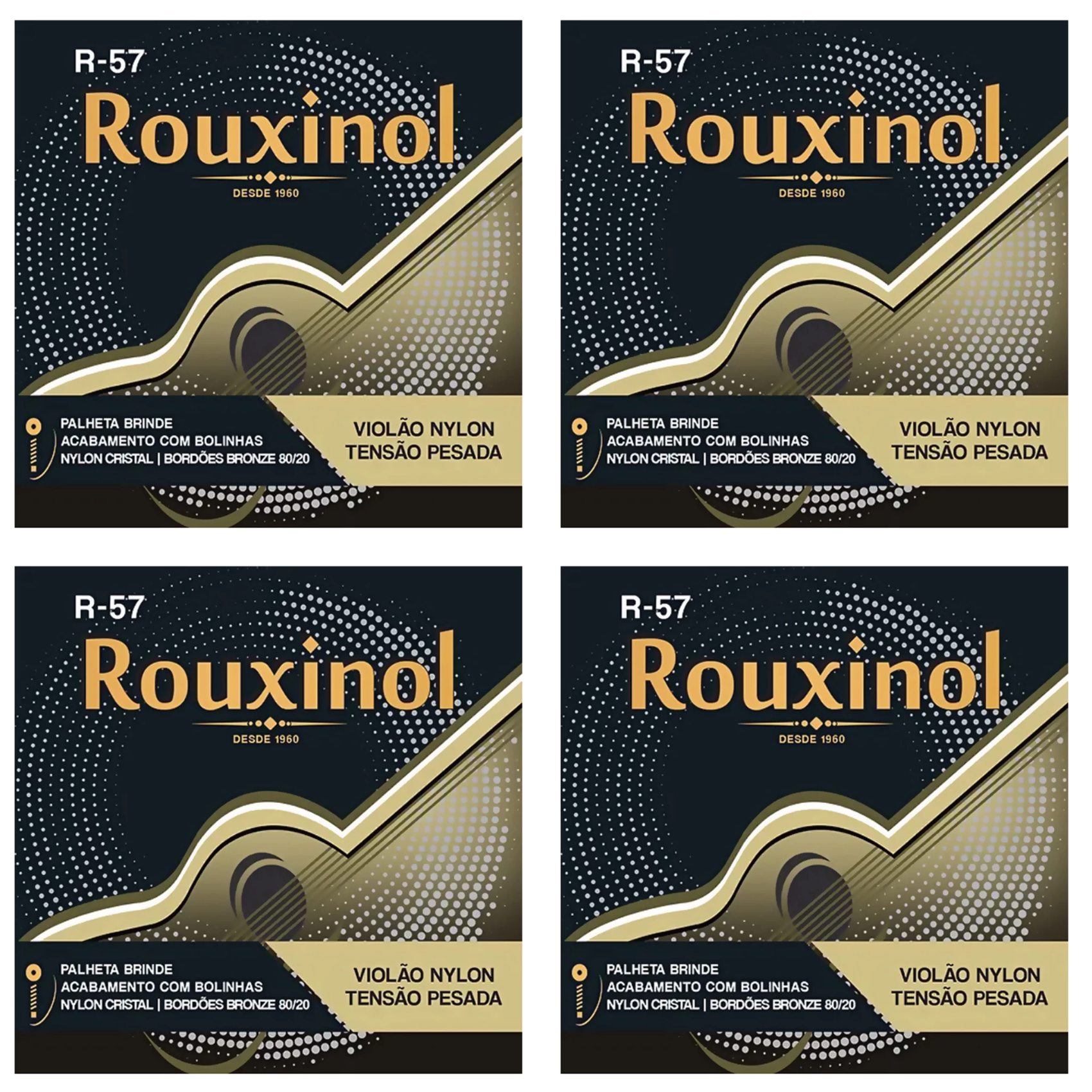 Kit 4 Encordoamentos Corda Para Violão Nylon Rouxinol R-57
