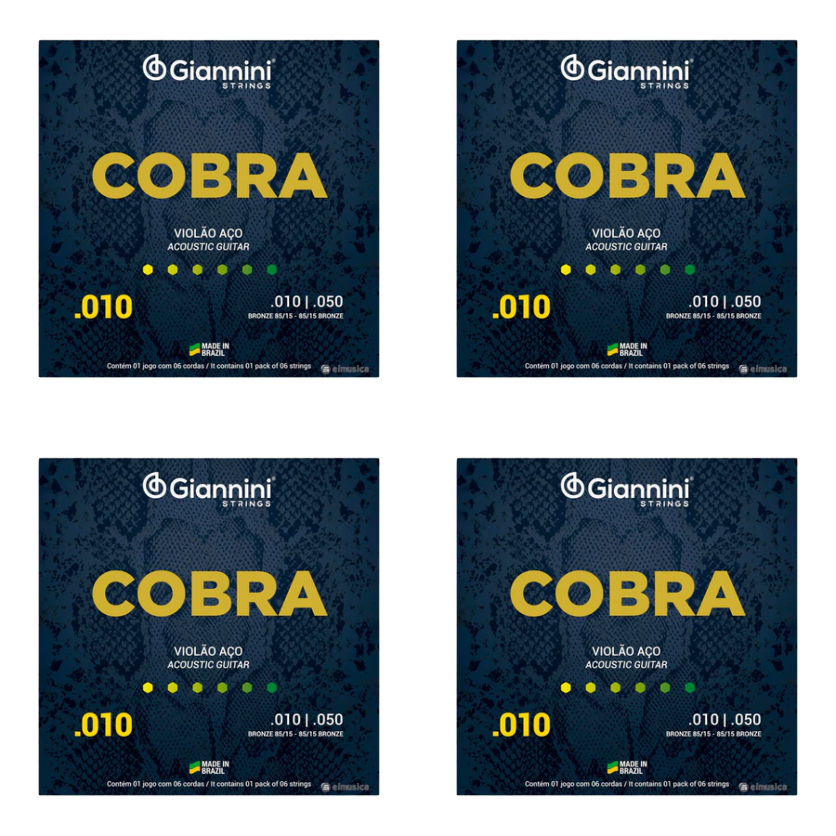Kit Com 4 Encordoamentos Giannini Cobra Violão Aço 010 GEEFLE