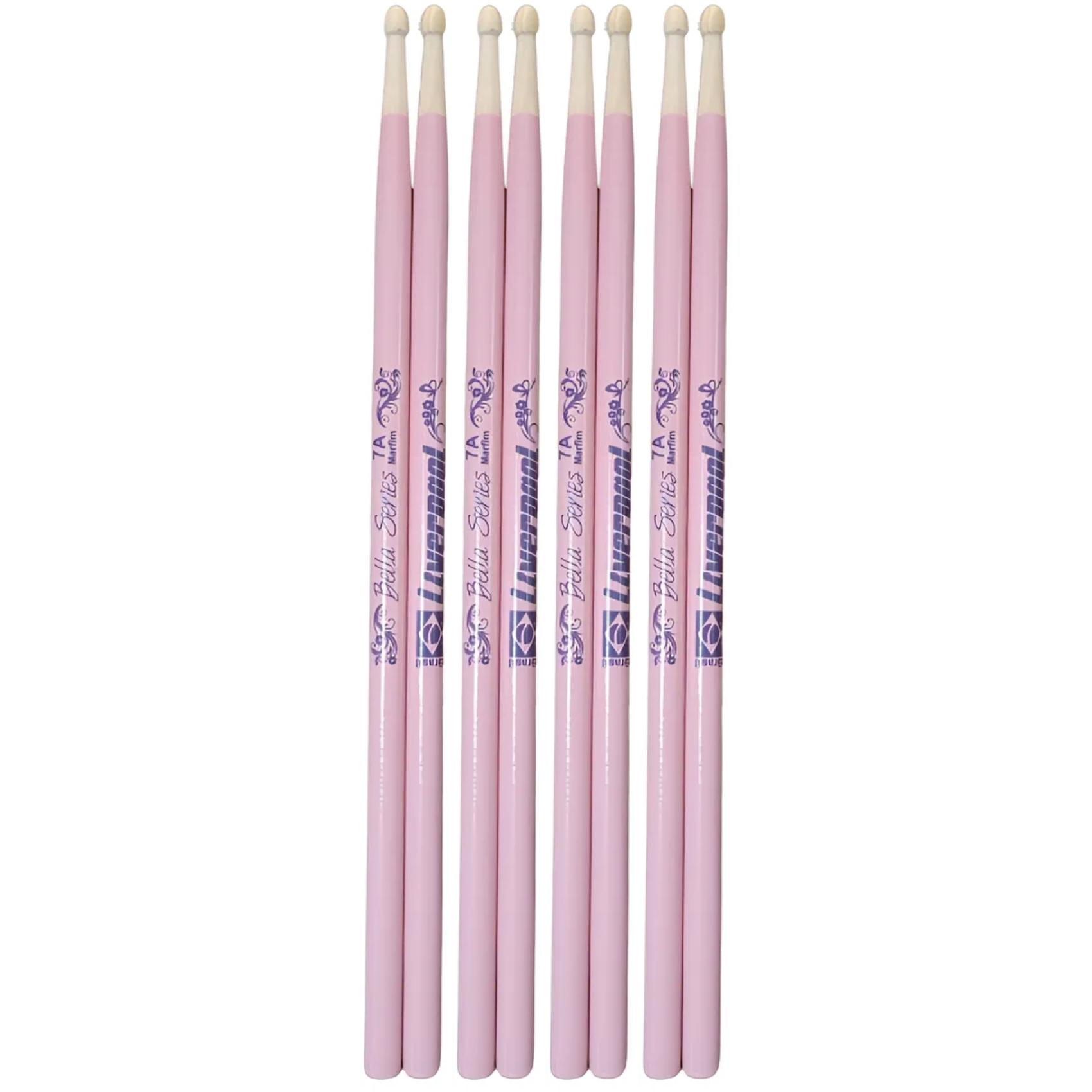 Kit 4 Pares Baqueta 7A Liverpool Bella Series Marfim Rosa Ponta de Madeira Par
