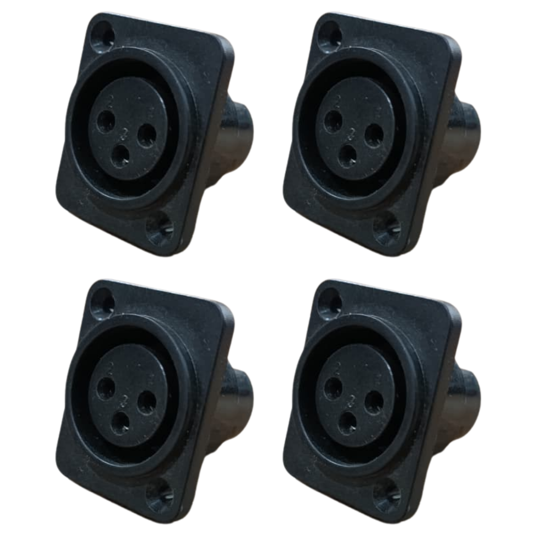 Kit 4 Plug XLR Femea Painel Plástico King Musical