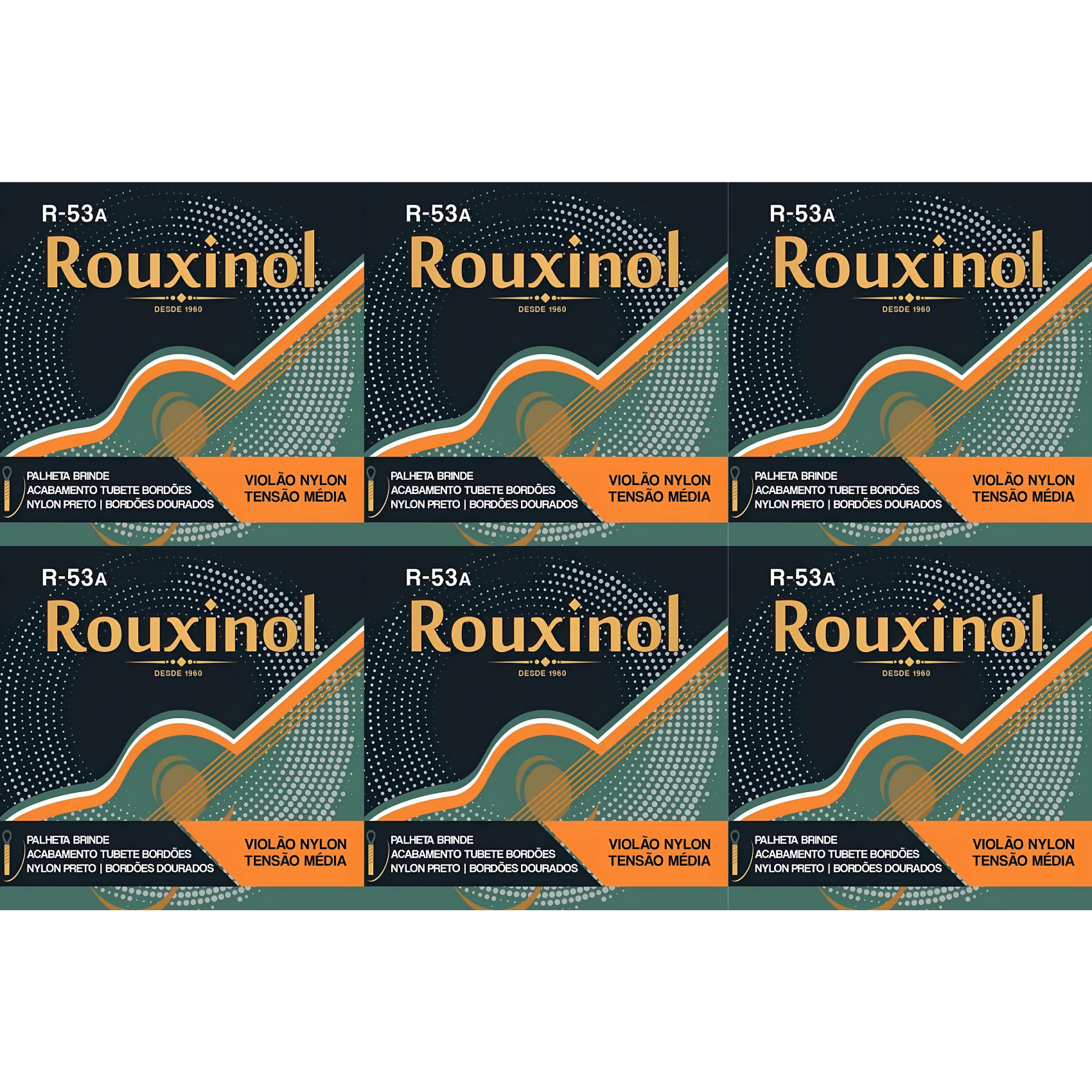 Kit Com 6 Encordoamentos Violão Nylon Rouxinol R-53 A Preto/Dourado Média