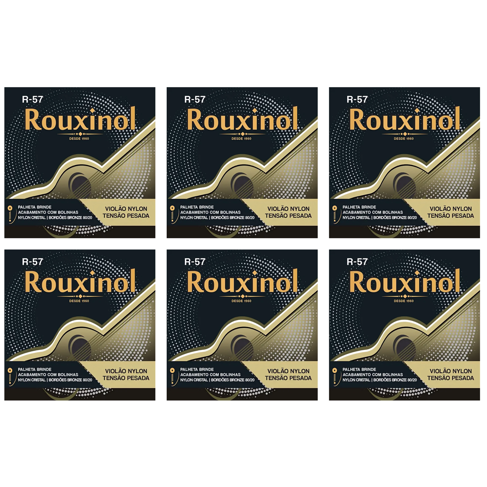 Kit 6 Encordoamentos Corda Para Violão Nylon Rouxinol R-57