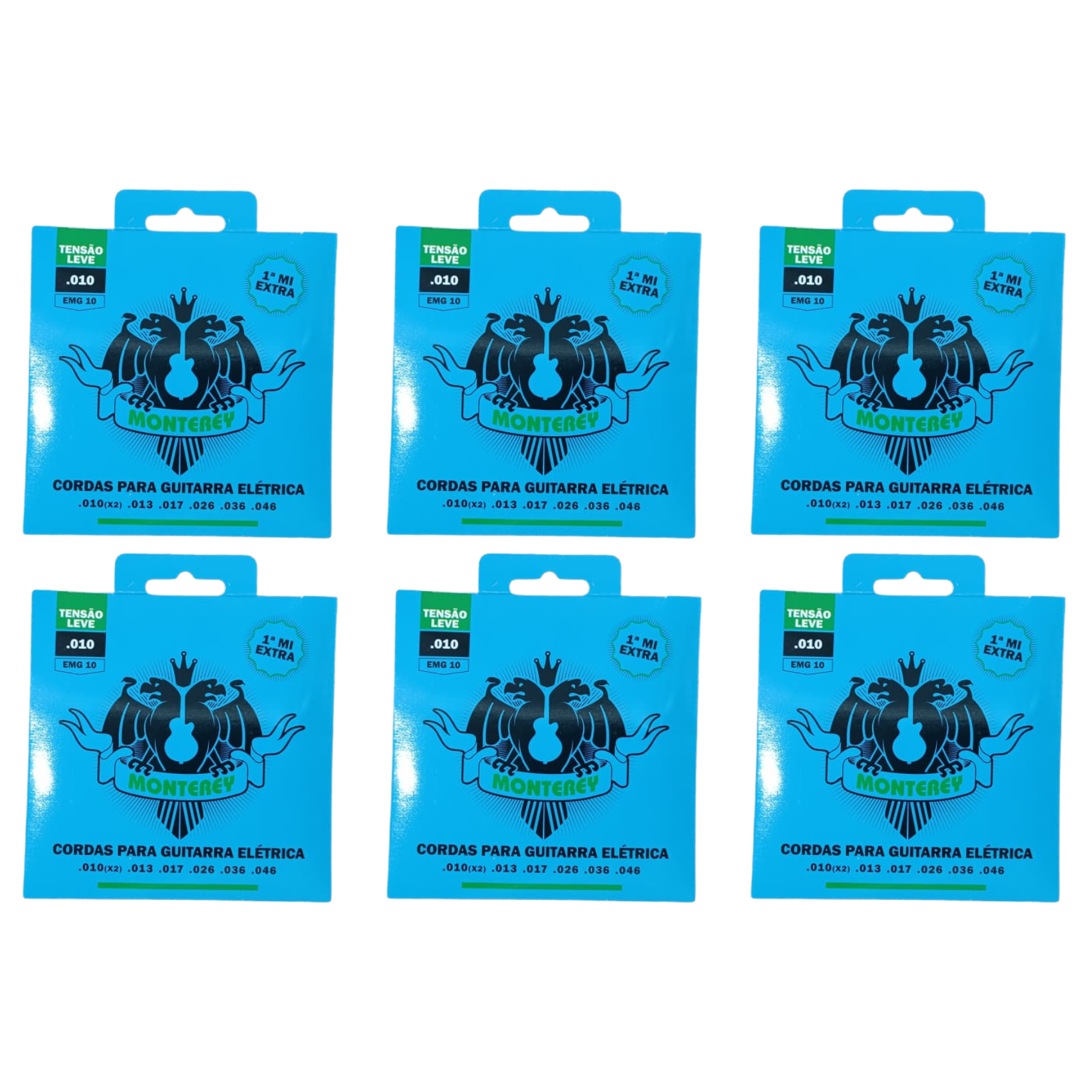 Kit 6 Encordoamentos Monterey Solez Guitarra 010 Mi Extra EMG10