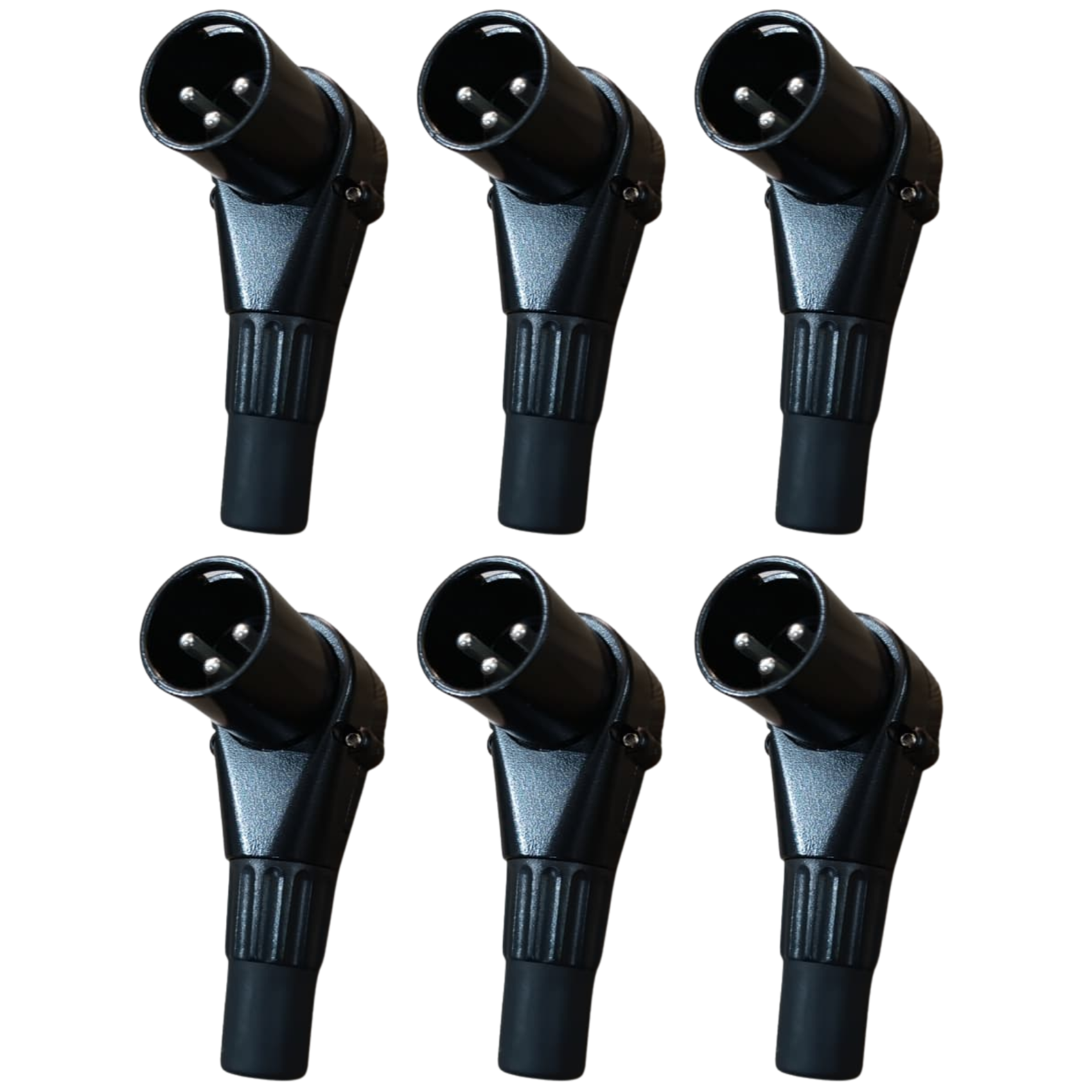 Kit 6 Plug XLR Macho Em L 90 Graus Profissional King Musical