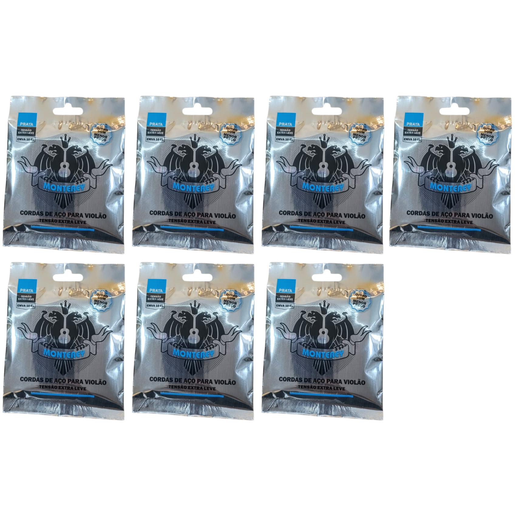 Kit 7 Jogos De Cordas Violão Aço Monterey 010 047 Prata EMVA10EL (Extra Leve)