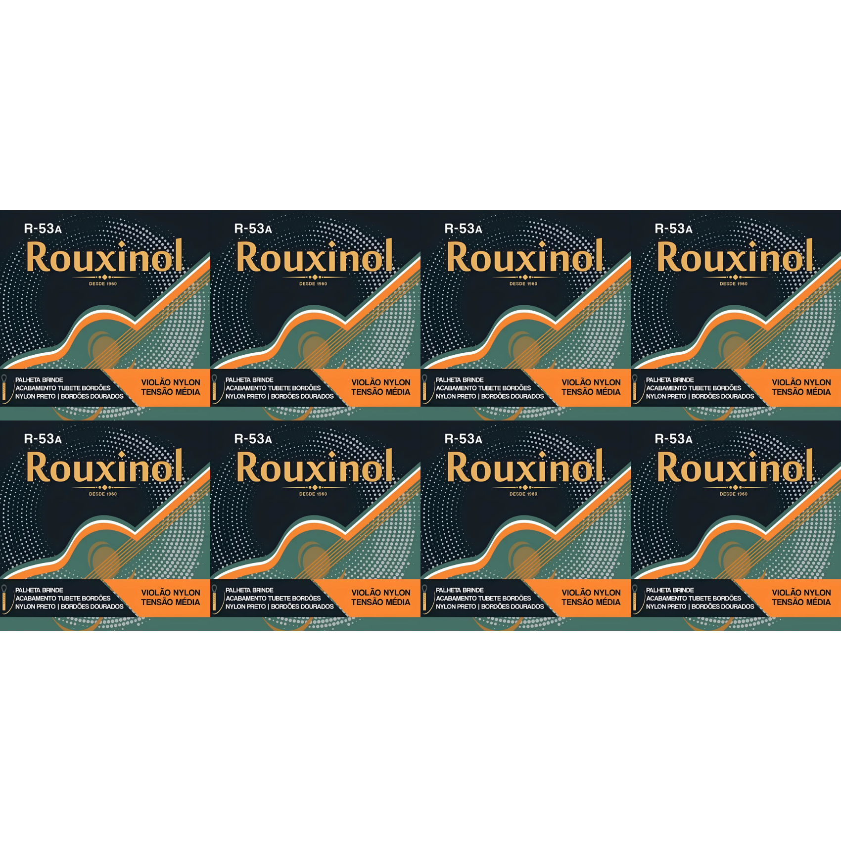 Kit Com 8 Encordoamentos Violão Nylon Rouxinol R-53 A Preto/Dourado Média