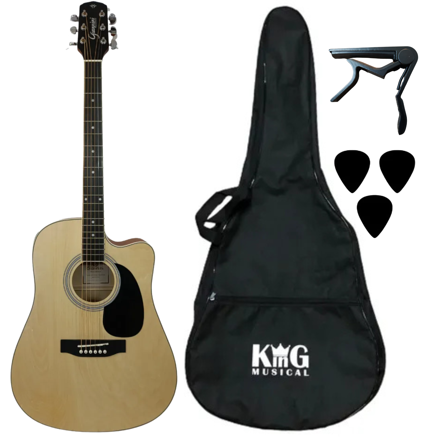 Kit Violão Eletroacústico Aço Giannini Performance Folk Natural Satin Fosco GDC-1 CEQ Com Capa, Palhetas e Capotraste