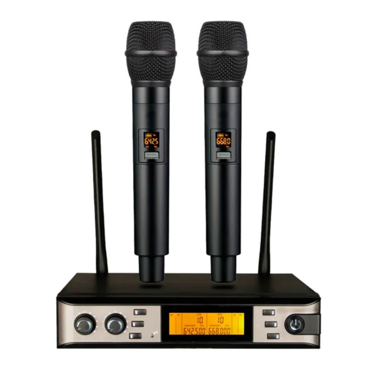 Microfone Sem Fio Duplo Kadosh de Mão UHF Recarregável K402M Profissional