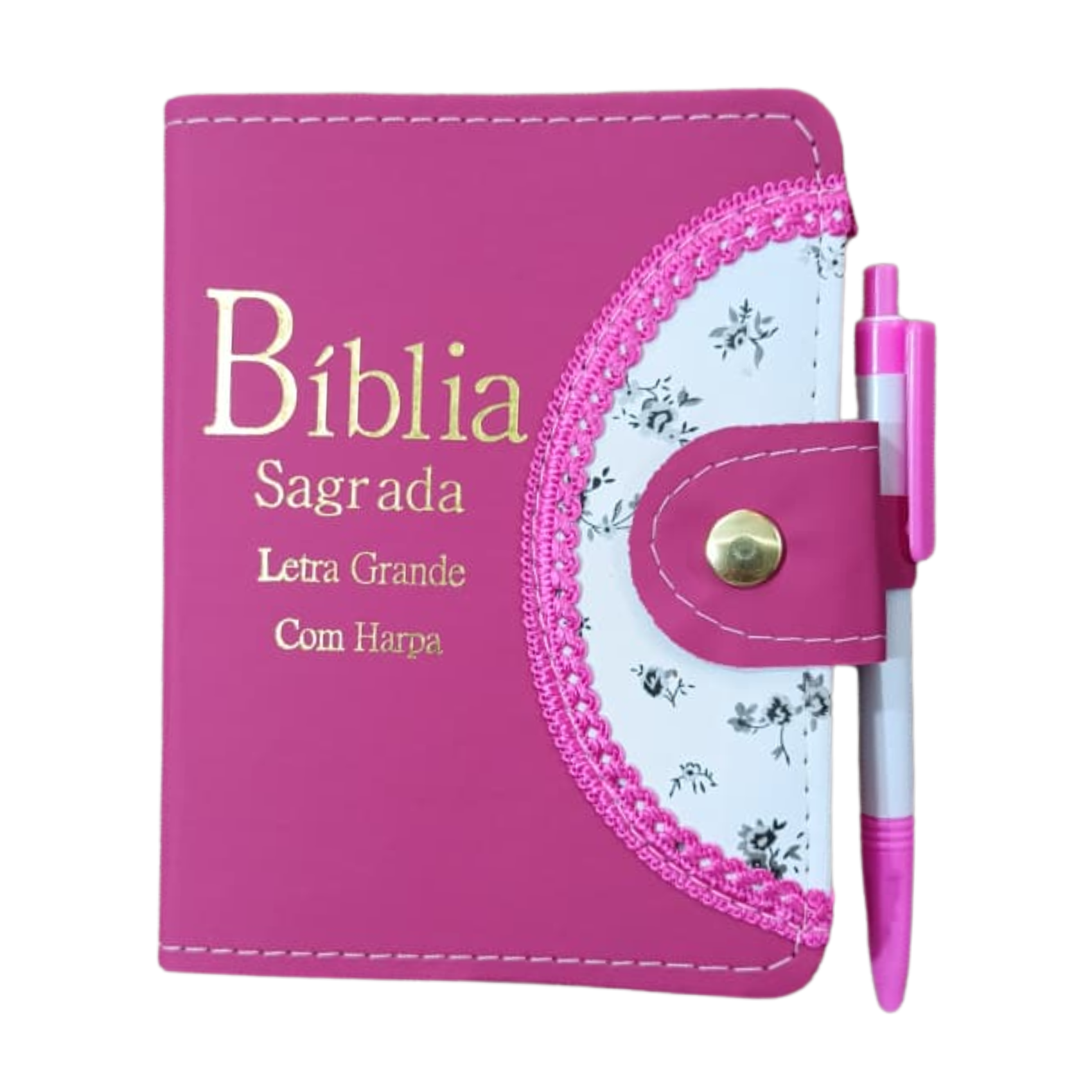 Biblia Média Carteira Harpa Letra Grande Índice Pink Floral